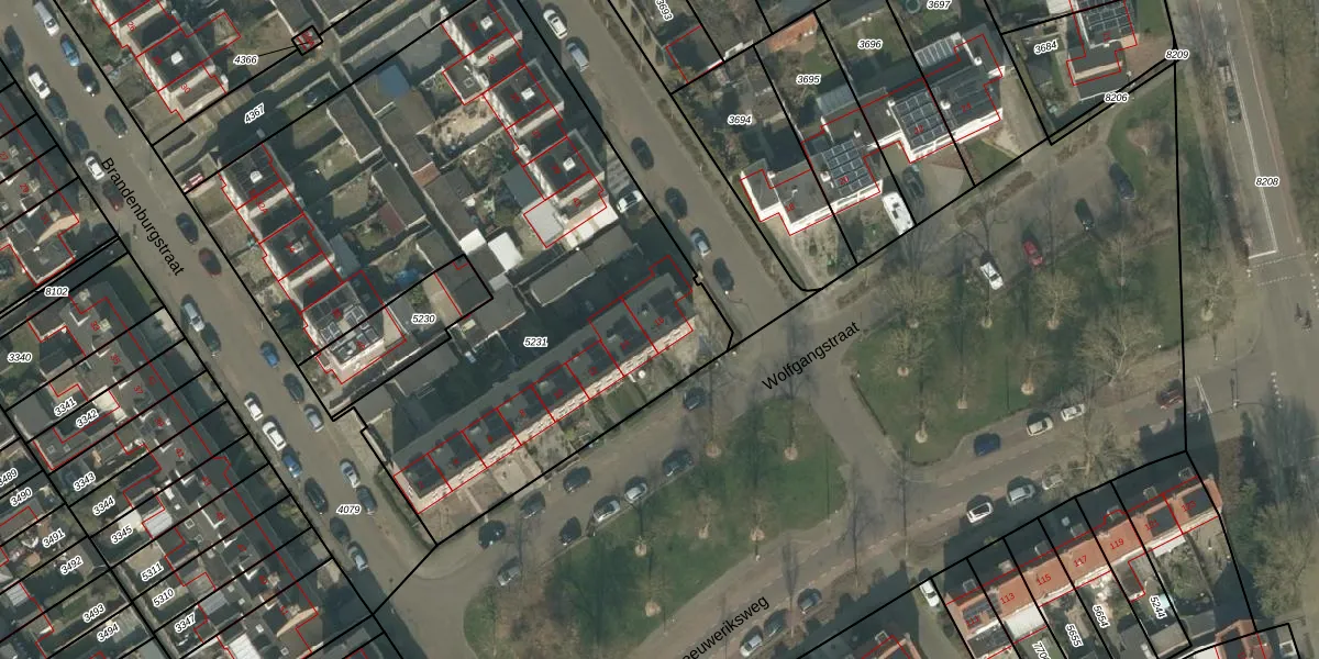 Het perceel waarop Wolfgangstraat 16 staat heeft een oppervlakte van 3413 m². Dit is een zeer groot perceel. De perceeloppervlakte wordt geregistreerd door het Kadaster. Gedetailleerde informatie over de maten van dit perceel kunt u vinden in het rapport Kadastrale kaart met maatvoering van Wolfgangstraat 16.