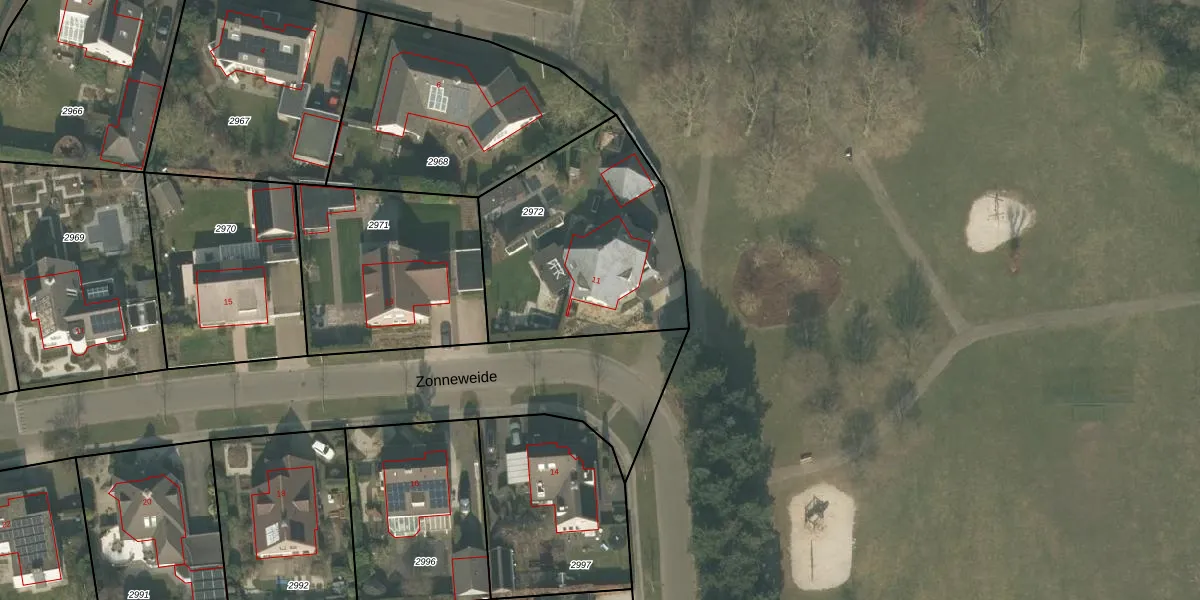 Het perceel waarop Zonneweide 11 staat heeft een oppervlakte van 981 m². Dit is een groot perceel. De perceeloppervlakte wordt geregistreerd door het Kadaster. Gedetailleerde informatie over de maten van dit perceel kunt u vinden in het rapport Kadastrale kaart met maatvoering van Zonneweide 11.