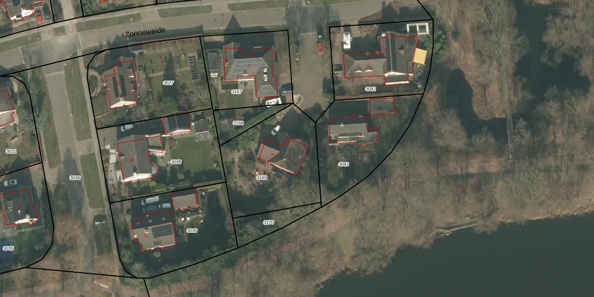 Zonneweide 5 is gelegen op kadastraal perceel UDN00I3169. Deze kadastrale aanduiding is uniek en wordt gebruikt door het Kadaster om eigendomsrechten en andere zakelijke rechten vast te leggen. Het perceel maakt onderdeel uit van de kadastrale gemeente Uden.