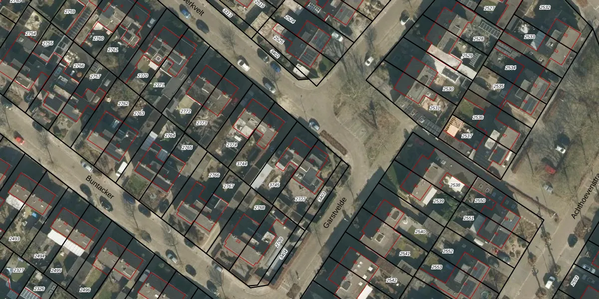 Gebruik de zoekbalk of klik op een perceel voor informatie over de adressen binnen dit perceel.