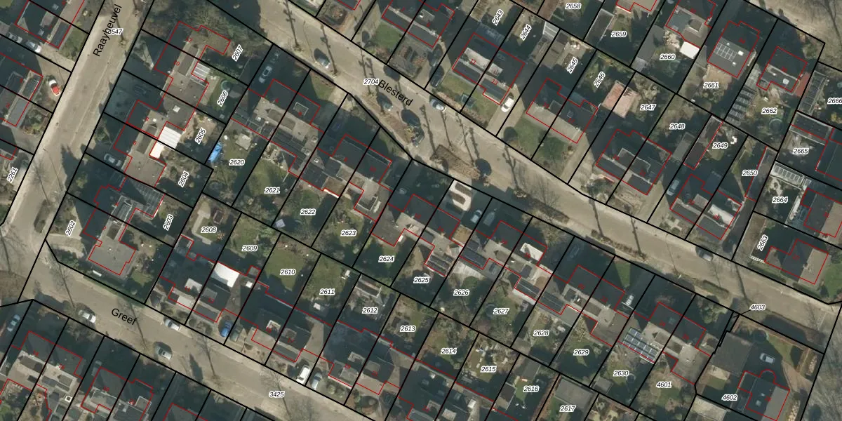 Het perceel waarop Blesterd 12 staat heeft een oppervlakte van 316 m². Dit is een groot perceel. De perceeloppervlakte wordt geregistreerd door het Kadaster. Gedetailleerde informatie over de maten van dit perceel kunt u vinden in het rapport Kadastrale kaart met maatvoering van Blesterd 12.