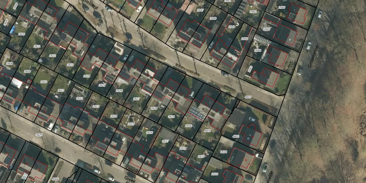 Het perceel waarop Blesterd 22 staat heeft een oppervlakte van 327 m². Dit is een groot perceel. De perceeloppervlakte wordt geregistreerd door het Kadaster. Gedetailleerde informatie over de maten van dit perceel kunt u vinden in het rapport Kadastrale kaart met maatvoering van Blesterd 22.