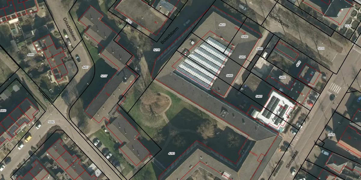 Het perceel waarop Boterbloem 1-016 staat heeft een oppervlakte van 6220 m². Dit is een zeer groot perceel. De perceeloppervlakte wordt geregistreerd door het Kadaster. Gedetailleerde informatie over de maten van dit perceel kunt u vinden in het rapport Kadastrale kaart met maatvoering van Boterbloem 1-016.