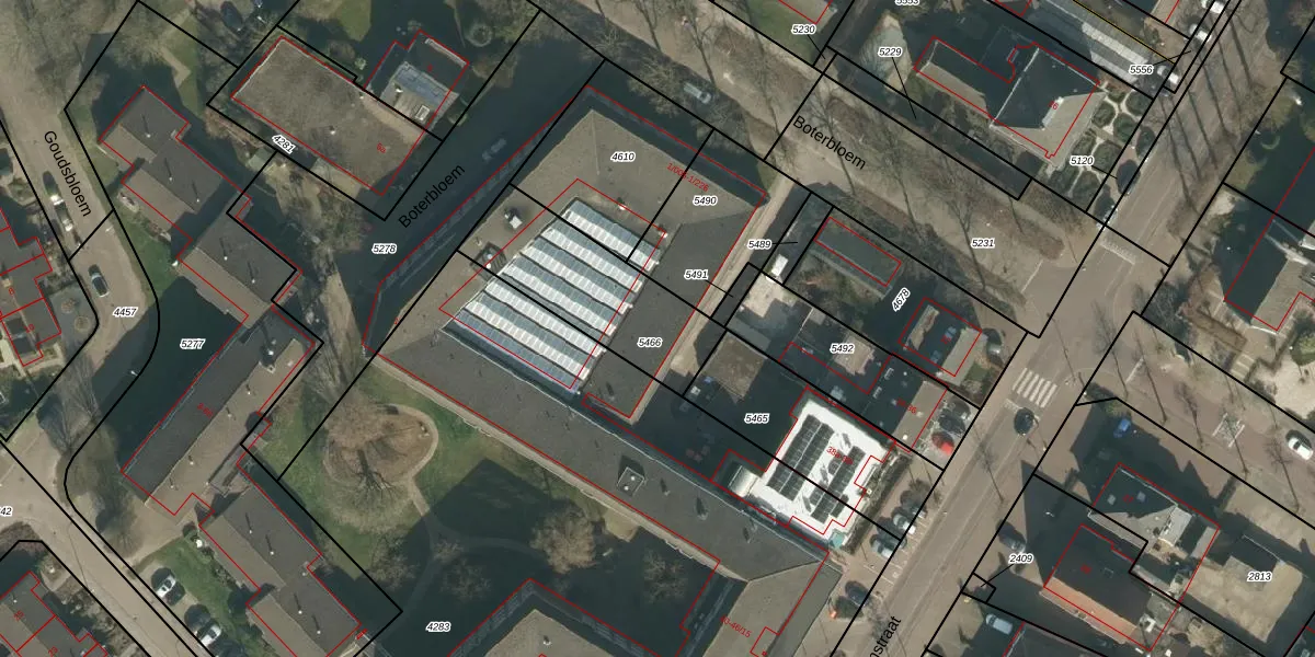 Boterbloem 1-103 is gelegen op kadastraal perceel UDH00F5466. Deze kadastrale aanduiding is uniek en wordt gebruikt door het Kadaster om eigendomsrechten en andere zakelijke rechten vast te leggen. Het perceel maakt onderdeel uit van de kadastrale gemeente Udenhout.