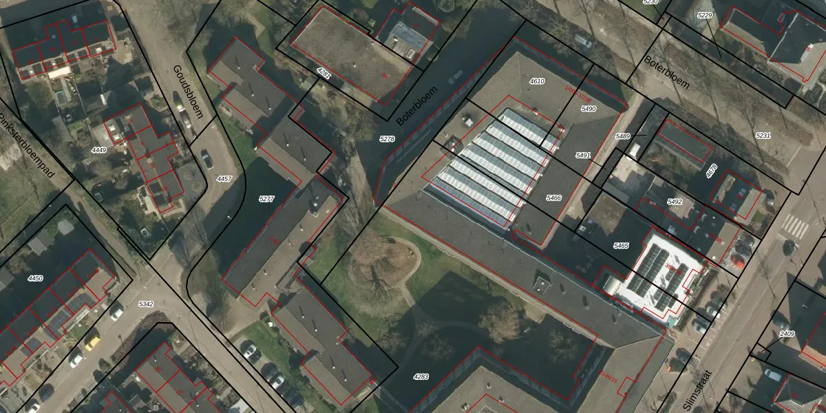 Het perceel waarop Boterbloem 1-120 staat heeft een oppervlakte van 6220 m². Dit is een zeer groot perceel. De perceeloppervlakte wordt geregistreerd door het Kadaster. Gedetailleerde informatie over de maten van dit perceel kunt u vinden in het rapport Kadastrale kaart met maatvoering van Boterbloem 1-120.