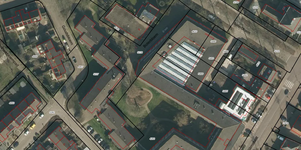 Het perceel waarop Boterbloem 1-220 staat heeft een oppervlakte van 6220 m². Dit is een zeer groot perceel. De perceeloppervlakte wordt geregistreerd door het Kadaster. Gedetailleerde informatie over de maten van dit perceel kunt u vinden in het rapport Kadastrale kaart met maatvoering van Boterbloem 1-220.