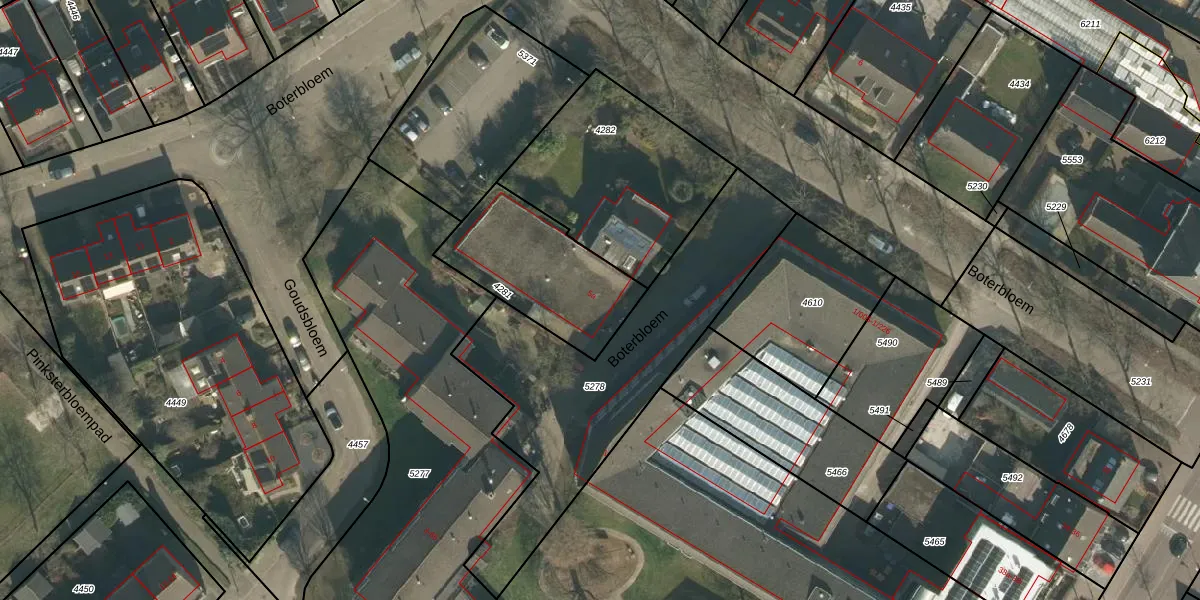Het perceel waarop Boterbloem 5-a staat heeft een oppervlakte van 488 m². Dit is een groot perceel. De perceeloppervlakte wordt geregistreerd door het Kadaster. Gedetailleerde informatie over de maten van dit perceel kunt u vinden in het rapport Kadastrale kaart met maatvoering van Boterbloem 5-a.