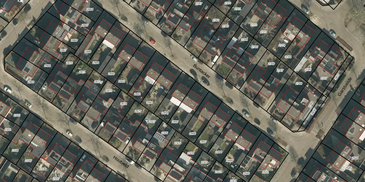 Het perceel waarop Buntacker 16 staat heeft een oppervlakte van 254 m². Dit is een middelgroot perceel. De perceeloppervlakte wordt geregistreerd door het Kadaster. Gedetailleerde informatie over de maten van dit perceel kunt u vinden in het rapport Kadastrale kaart met maatvoering van Buntacker 16.