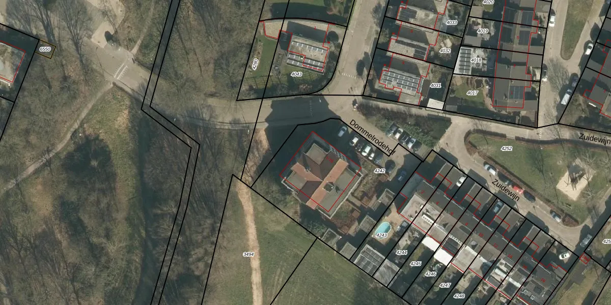 Dommelrodehof 5 is gelegen op kadastraal perceel UDH00E4242. Deze kadastrale aanduiding is uniek en wordt gebruikt door het Kadaster om eigendomsrechten en andere zakelijke rechten vast te leggen. Het perceel maakt onderdeel uit van de kadastrale gemeente Udenhout.