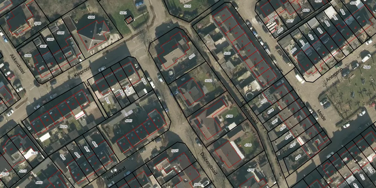 Het perceel waarop Duizendblad 8 staat heeft een oppervlakte van 493 m². Dit is een groot perceel. De perceeloppervlakte wordt geregistreerd door het Kadaster. Gedetailleerde informatie over de maten van dit perceel kunt u vinden in het rapport Kadastrale kaart met maatvoering van Duizendblad 8.