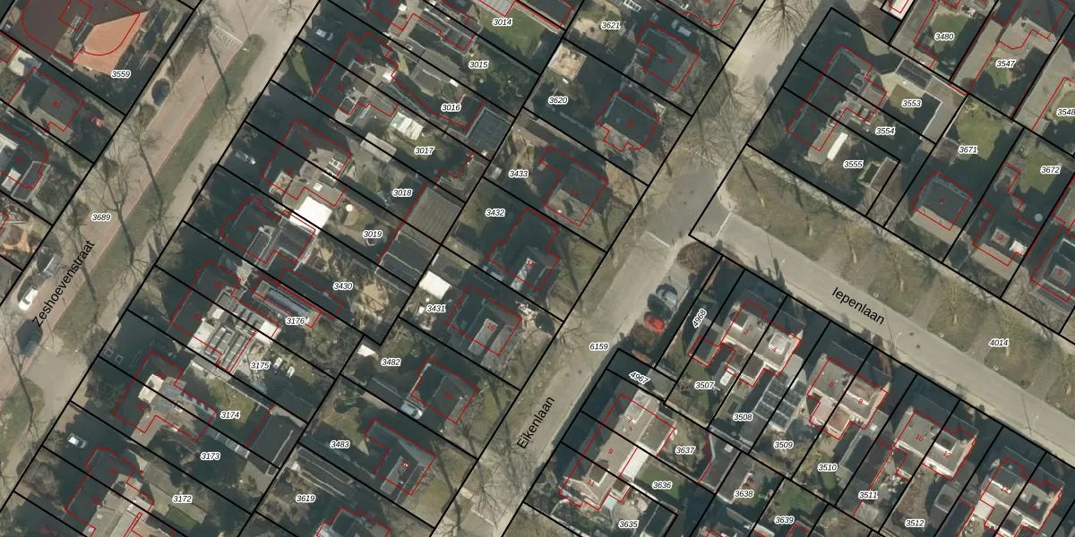 Gebruik de zoekbalk of klik op een perceel voor informatie over de adressen binnen dit perceel.