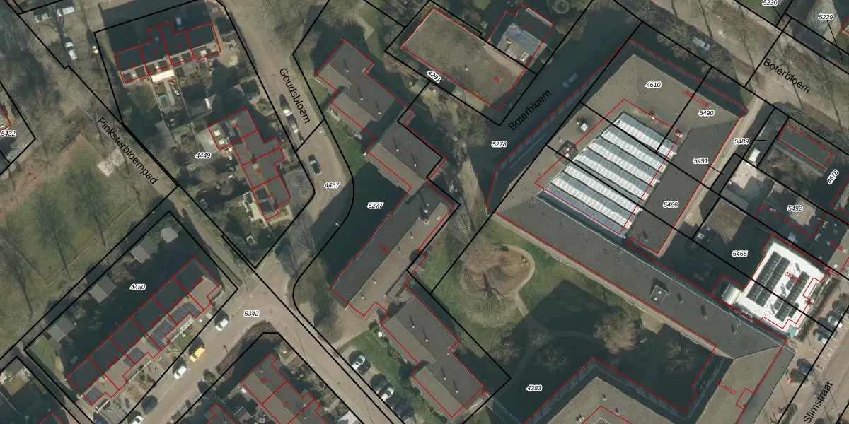 Het perceel waarop Goudsbloem 39 staat heeft een oppervlakte van 2565 m². Dit is een zeer groot perceel. De perceeloppervlakte wordt geregistreerd door het Kadaster. Gedetailleerde informatie over de maten van dit perceel kunt u vinden in het rapport Kadastrale kaart met maatvoering van Goudsbloem 39.
