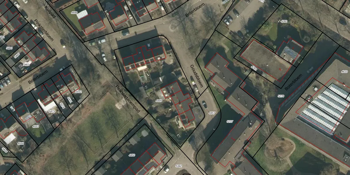 Het perceel waarop Goudsbloem 4 staat heeft een oppervlakte van 1745 m². Dit is een zeer groot perceel. De perceeloppervlakte wordt geregistreerd door het Kadaster. Gedetailleerde informatie over de maten van dit perceel kunt u vinden in het rapport Kadastrale kaart met maatvoering van Goudsbloem 4.
