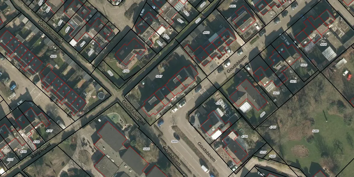 Het perceel waarop Goudsbloem 56 staat heeft een oppervlakte van 980 m². Dit is een groot perceel. De perceeloppervlakte wordt geregistreerd door het Kadaster. Gedetailleerde informatie over de maten van dit perceel kunt u vinden in het rapport Kadastrale kaart met maatvoering van Goudsbloem 56.