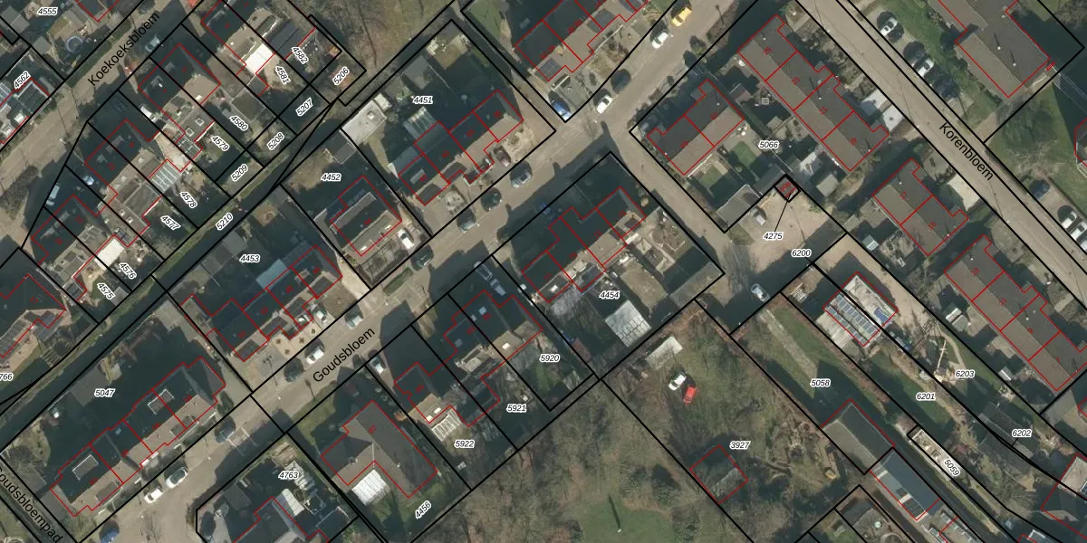 Het perceel waarop Goudsbloem 77 staat heeft een oppervlakte van 906 m². Dit is een groot perceel. De perceeloppervlakte wordt geregistreerd door het Kadaster. Gedetailleerde informatie over de maten van dit perceel kunt u vinden in het rapport Kadastrale kaart met maatvoering van Goudsbloem 77.