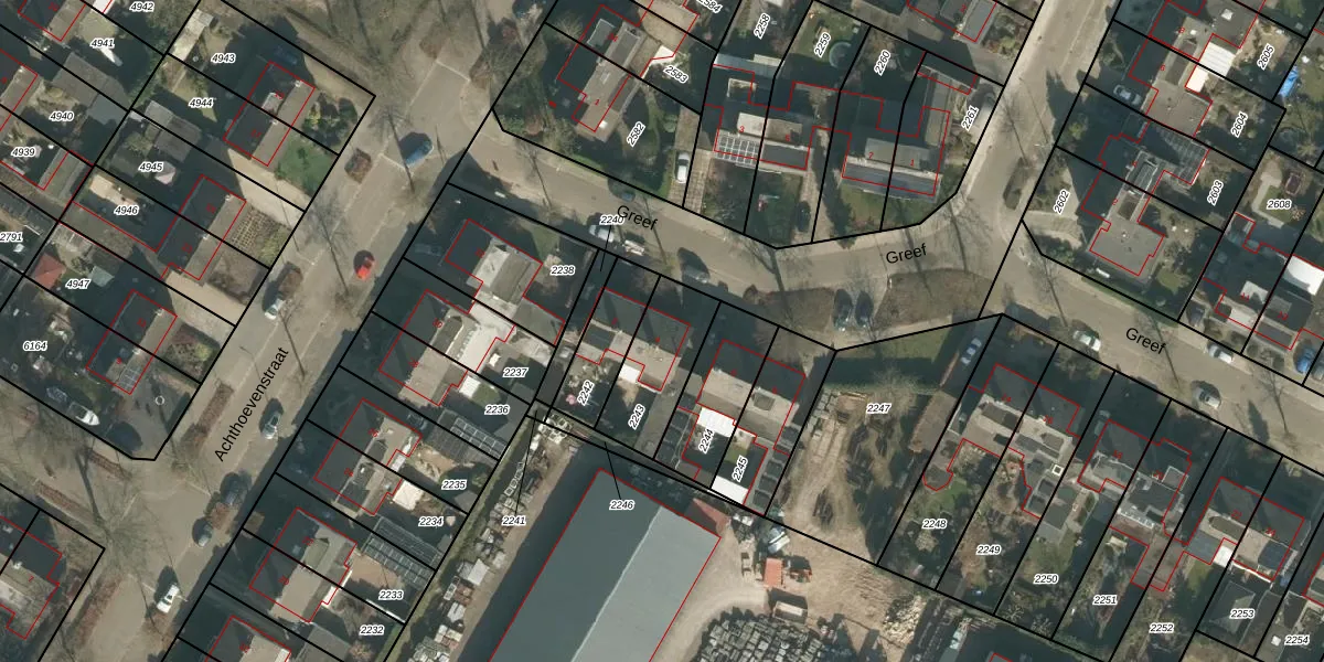 Het perceel waarop Greef 4 staat heeft een oppervlakte van 258 m². Dit is een middelgroot perceel. De perceeloppervlakte wordt geregistreerd door het Kadaster. Gedetailleerde informatie over de maten van dit perceel kunt u vinden in het rapport Kadastrale kaart met maatvoering van Greef 4.