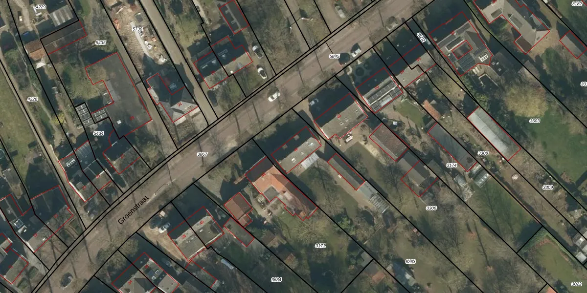 Het perceel waarop Groenstraat 46 staat heeft een oppervlakte van 1871 m². Dit is een zeer groot perceel. De perceeloppervlakte wordt geregistreerd door het Kadaster. Gedetailleerde informatie over de maten van dit perceel kunt u vinden in het rapport Kadastrale kaart met maatvoering van Groenstraat 46.