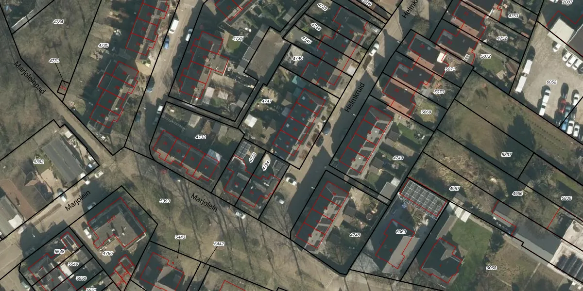 Het perceel waarop Helmkruid 26 staat heeft een oppervlakte van 692 m². Dit is een groot perceel. De perceeloppervlakte wordt geregistreerd door het Kadaster. Gedetailleerde informatie over de maten van dit perceel kunt u vinden in het rapport Kadastrale kaart met maatvoering van Helmkruid 26.