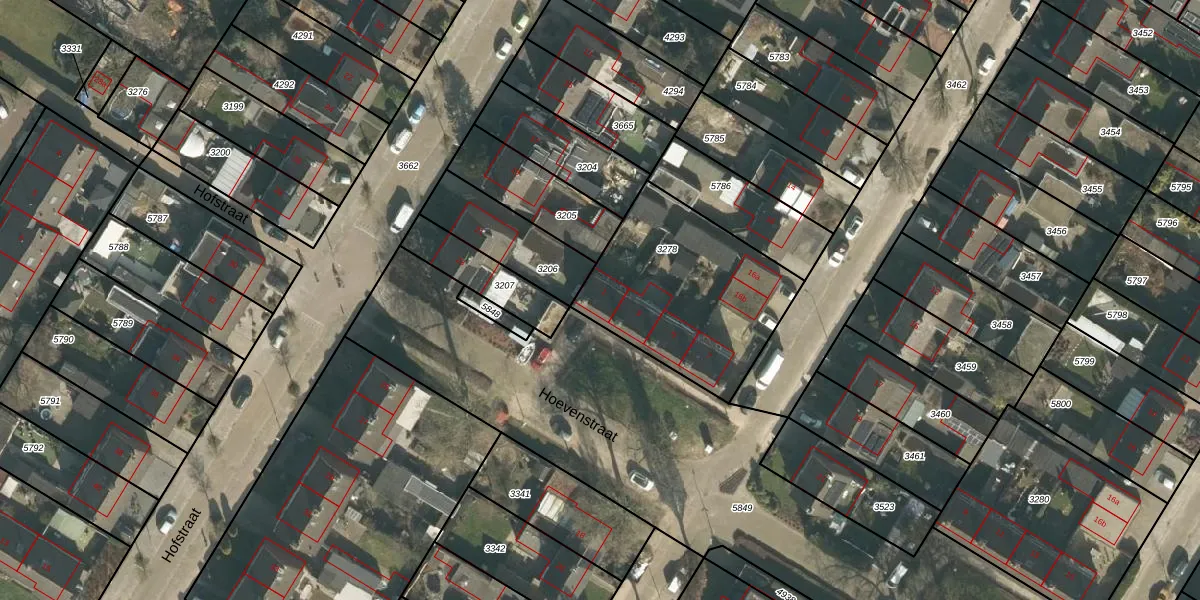 Het perceel waarop Hoevenstraat 1 staat heeft een oppervlakte van 770 m². Dit is een groot perceel. De perceeloppervlakte wordt geregistreerd door het Kadaster. Gedetailleerde informatie over de maten van dit perceel kunt u vinden in het rapport Kadastrale kaart met maatvoering van Hoevenstraat 1.