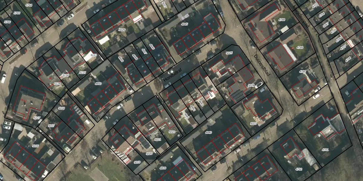 Hondsdraf 5 is gelegen op kadastraal perceel UDH00F4842. Deze kadastrale aanduiding is uniek en wordt gebruikt door het Kadaster om eigendomsrechten en andere zakelijke rechten vast te leggen. Het perceel maakt onderdeel uit van de kadastrale gemeente Udenhout.
