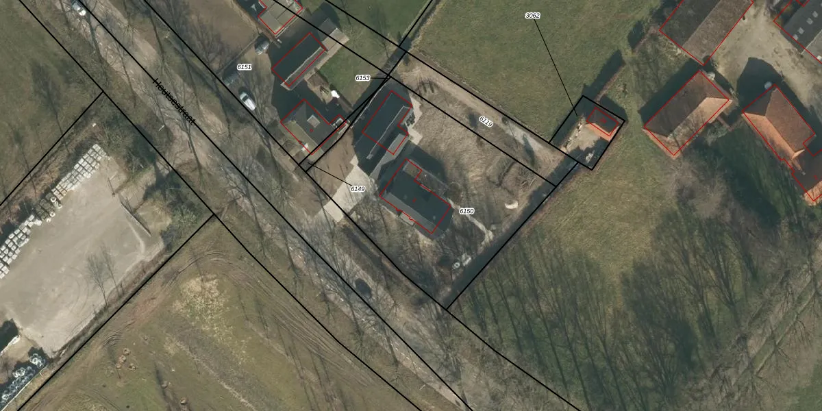 Het perceel waarop Houtsestraat 3 staat heeft een oppervlakte van 1722 m². Dit is een zeer groot perceel. De perceeloppervlakte wordt geregistreerd door het Kadaster. Gedetailleerde informatie over de maten van dit perceel kunt u vinden in het rapport Kadastrale kaart met maatvoering van Houtsestraat 3.