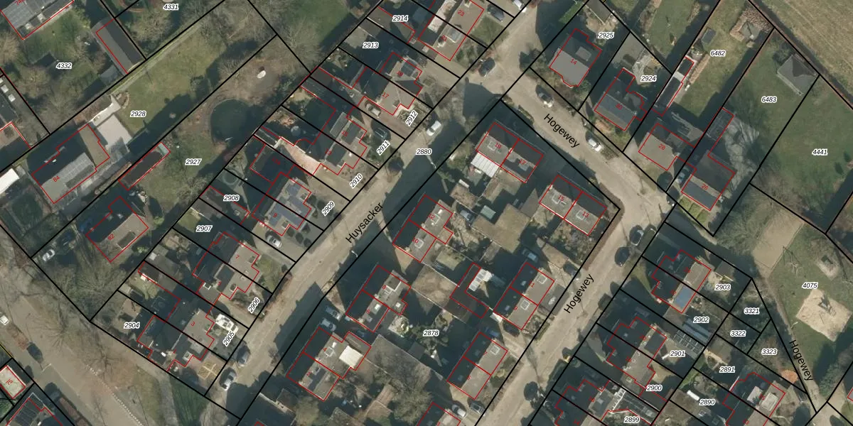 Het perceel waarop Huysacker 12 staat heeft een oppervlakte van 4510 m². Dit is een zeer groot perceel. De perceeloppervlakte wordt geregistreerd door het Kadaster. Gedetailleerde informatie over de maten van dit perceel kunt u vinden in het rapport Kadastrale kaart met maatvoering van Huysacker 12.