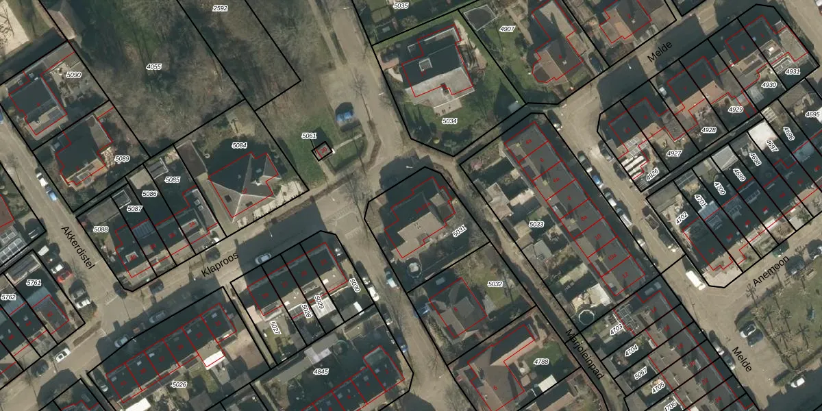 Het perceel waarop Klaproos 19-b staat heeft een oppervlakte van 530 m². Dit is een groot perceel. De perceeloppervlakte wordt geregistreerd door het Kadaster. Gedetailleerde informatie over de maten van dit perceel kunt u vinden in het rapport Kadastrale kaart met maatvoering van Klaproos 19-b.