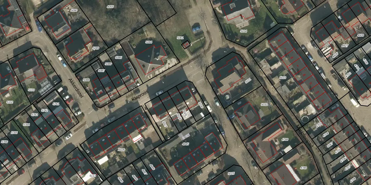 Het perceel waarop Klaproos 23 staat heeft een oppervlakte van 185 m². Dit is een middelgroot perceel. De perceeloppervlakte wordt geregistreerd door het Kadaster. Gedetailleerde informatie over de maten van dit perceel kunt u vinden in het rapport Kadastrale kaart met maatvoering van Klaproos 23.