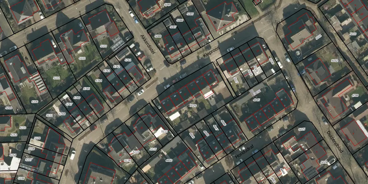 Klaproos 37 is gelegen op kadastraal perceel UDH00F5026. Deze kadastrale aanduiding is uniek en wordt gebruikt door het Kadaster om eigendomsrechten en andere zakelijke rechten vast te leggen. Het perceel maakt onderdeel uit van de kadastrale gemeente Udenhout.