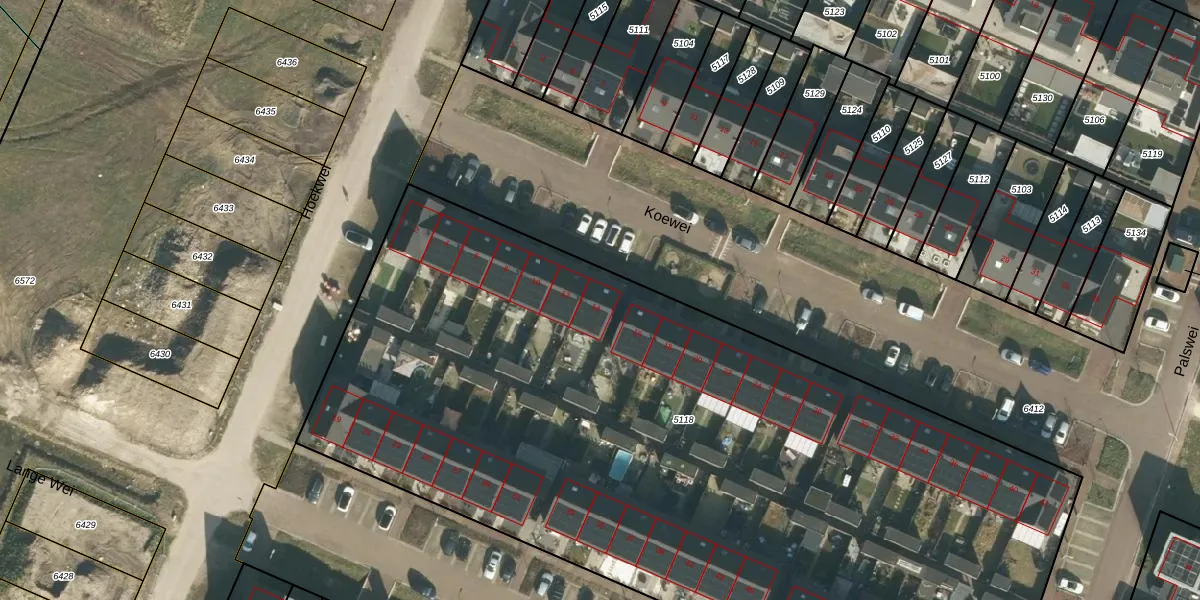 Het perceel waarop Koewei 14 staat heeft een oppervlakte van 5860 m². Dit is een zeer groot perceel. De perceeloppervlakte wordt geregistreerd door het Kadaster. Gedetailleerde informatie over de maten van dit perceel kunt u vinden in het rapport Kadastrale kaart met maatvoering van Koewei 14.