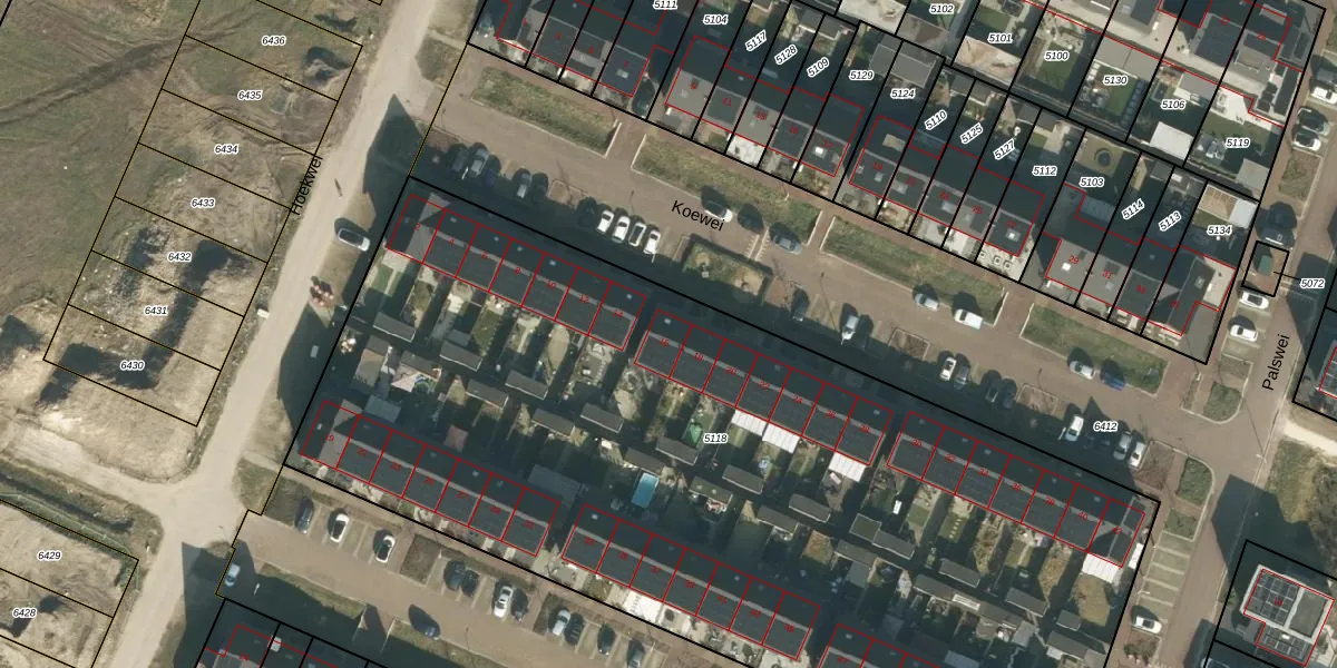 Het perceel waarop Koewei 16 staat heeft een oppervlakte van 5860 m². Dit is een zeer groot perceel. De perceeloppervlakte wordt geregistreerd door het Kadaster. Gedetailleerde informatie over de maten van dit perceel kunt u vinden in het rapport Kadastrale kaart met maatvoering van Koewei 16.