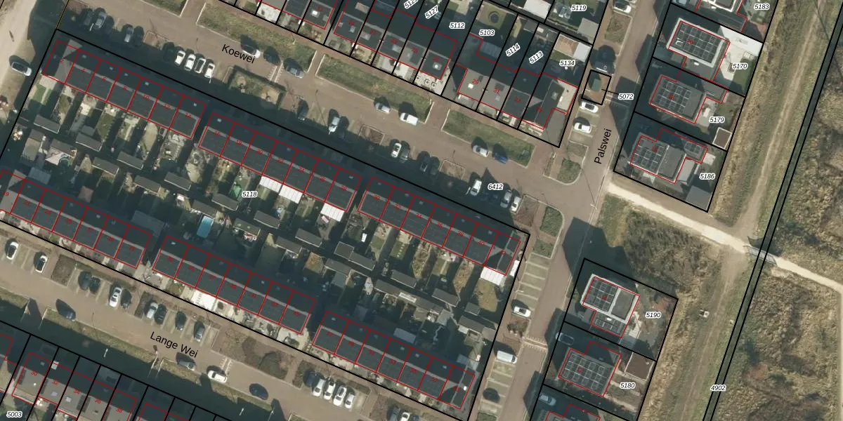 Het perceel waarop Koewei 34 staat heeft een oppervlakte van 5860 m². Dit is een zeer groot perceel. De perceeloppervlakte wordt geregistreerd door het Kadaster. Gedetailleerde informatie over de maten van dit perceel kunt u vinden in het rapport Kadastrale kaart met maatvoering van Koewei 34.