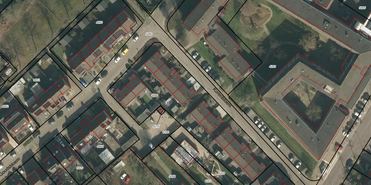 Korenbloem 19 is gelegen op kadastraal perceel UDH00F5066. Deze kadastrale aanduiding is uniek en wordt gebruikt door het Kadaster om eigendomsrechten en andere zakelijke rechten vast te leggen. Het perceel maakt onderdeel uit van de kadastrale gemeente Udenhout.