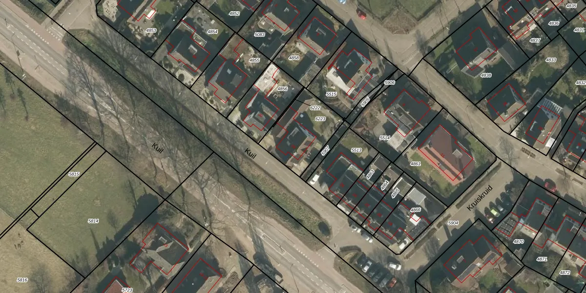 Het perceel waarop Kuil 28 staat heeft een oppervlakte van 445 m². Dit is een groot perceel. De perceeloppervlakte wordt geregistreerd door het Kadaster. Gedetailleerde informatie over de maten van dit perceel kunt u vinden in het rapport Kadastrale kaart met maatvoering van Kuil 28.