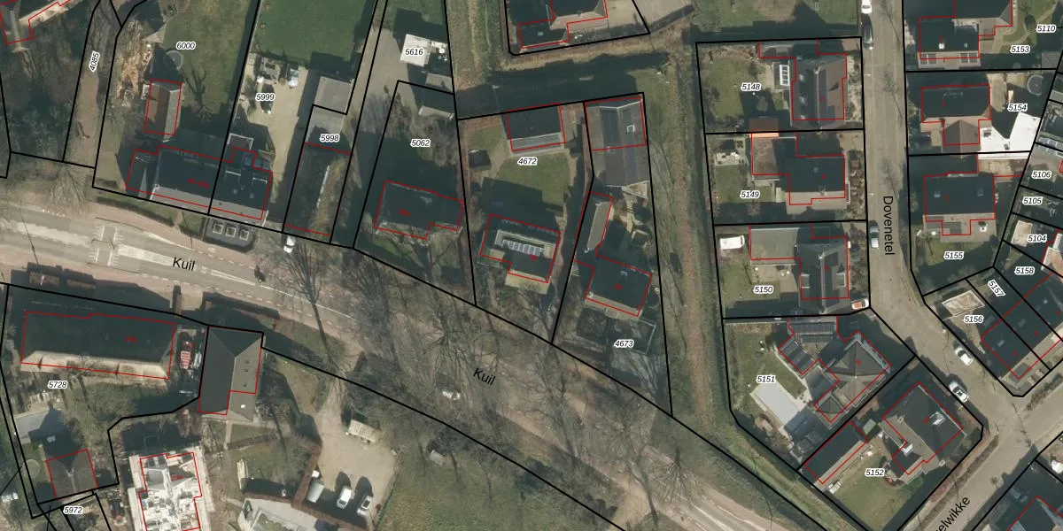Het perceel waarop Kuil 38 staat heeft een oppervlakte van 860 m². Dit is een groot perceel. De perceeloppervlakte wordt geregistreerd door het Kadaster. Gedetailleerde informatie over de maten van dit perceel kunt u vinden in het rapport Kadastrale kaart met maatvoering van Kuil 38.
