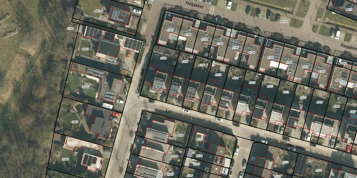 Gebruik de zoekbalk of klik op een perceel voor informatie over de adressen binnen dit perceel.