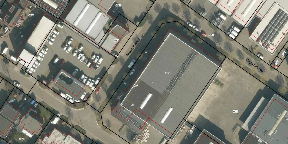 Het perceel waarop Magazijnweg 2 staat heeft een oppervlakte van 4327 m². Dit is een zeer groot perceel. De perceeloppervlakte wordt geregistreerd door het Kadaster. Gedetailleerde informatie over de maten van dit perceel kunt u vinden in het rapport Kadastrale kaart met maatvoering van Magazijnweg 2.
