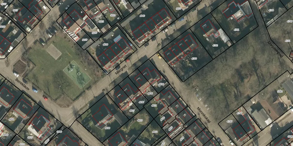 Het perceel waarop Margriet 49 staat heeft een oppervlakte van 226 m². Dit is een middelgroot perceel. De perceeloppervlakte wordt geregistreerd door het Kadaster. Gedetailleerde informatie over de maten van dit perceel kunt u vinden in het rapport Kadastrale kaart met maatvoering van Margriet 49.