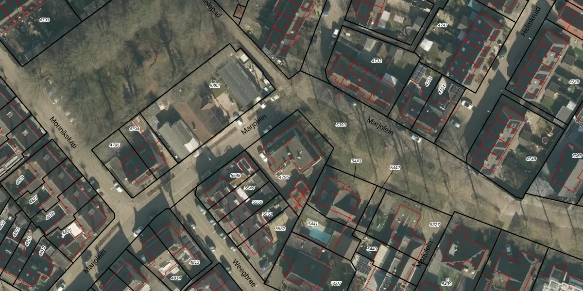 Het perceel waarop Marjolein 17 staat heeft een oppervlakte van 564 m². Dit is een groot perceel. De perceeloppervlakte wordt geregistreerd door het Kadaster. Gedetailleerde informatie over de maten van dit perceel kunt u vinden in het rapport Kadastrale kaart met maatvoering van Marjolein 17.