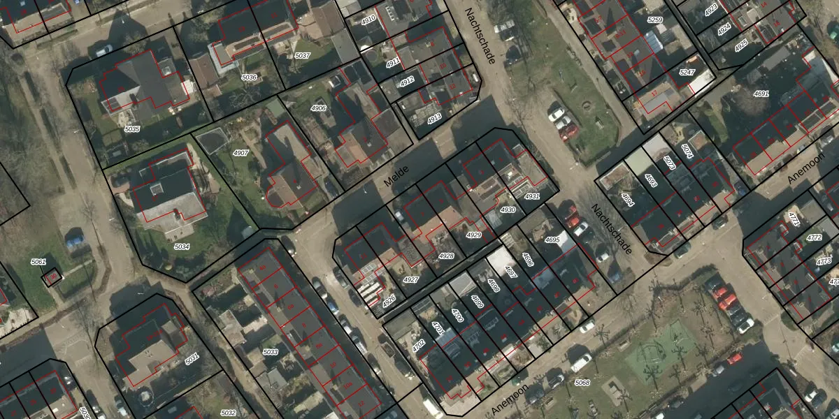 Gebruik de zoekbalk of klik op een perceel voor informatie over de adressen binnen dit perceel.