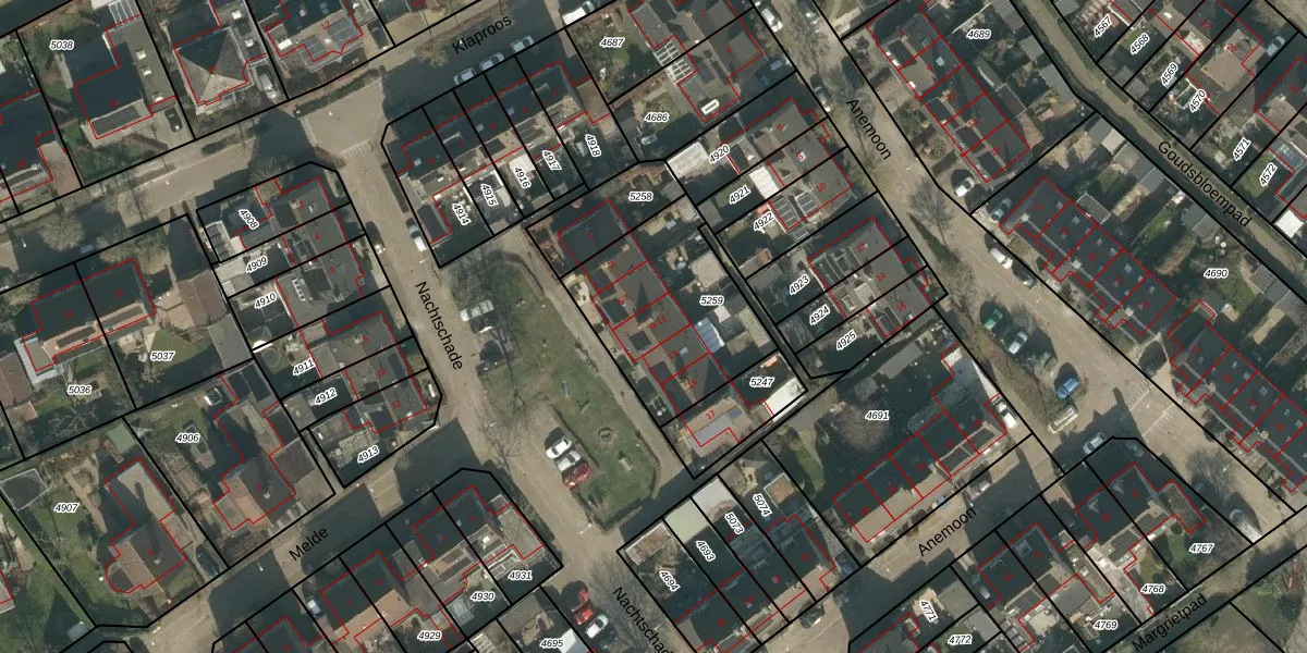 Het perceel waarop Nachtschade 11 staat heeft een oppervlakte van 613 m². Dit is een groot perceel. De perceeloppervlakte wordt geregistreerd door het Kadaster. Gedetailleerde informatie over de maten van dit perceel kunt u vinden in het rapport Kadastrale kaart met maatvoering van Nachtschade 11.