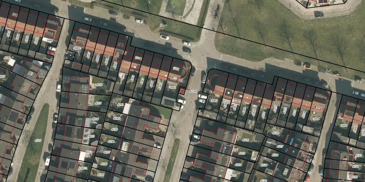 Gebruik de zoekbalk of klik op een perceel voor informatie over de adressen binnen dit perceel.
