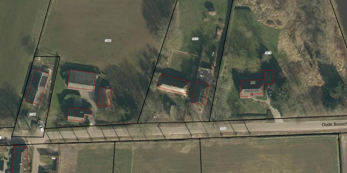 Het perceel waarop Oude Bosschebaan 9-b staat heeft een oppervlakte van 3185 m². Dit is een zeer groot perceel. De perceeloppervlakte wordt geregistreerd door het Kadaster. Gedetailleerde informatie over de maten van dit perceel kunt u vinden in het rapport Kadastrale kaart met maatvoering van Oude Bosschebaan 9-b.