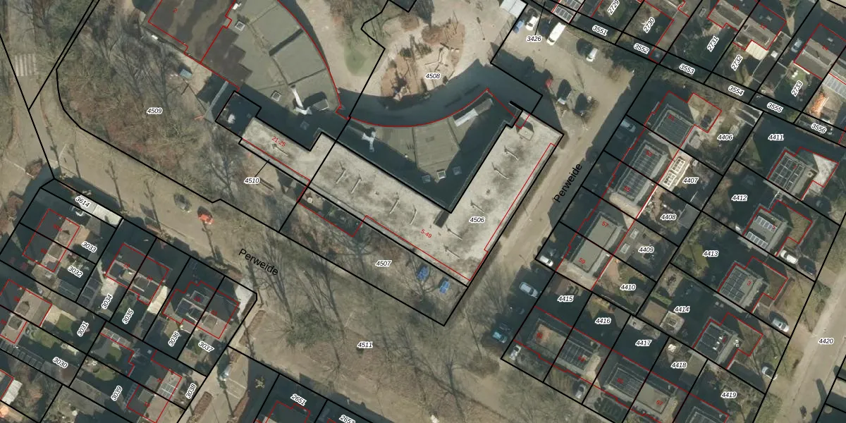 Het perceel waarop Perweide 41 staat heeft een oppervlakte van 944 m². Dit is een groot perceel. De perceeloppervlakte wordt geregistreerd door het Kadaster. Gedetailleerde informatie over de maten van dit perceel kunt u vinden in het rapport Kadastrale kaart met maatvoering van Perweide 41.