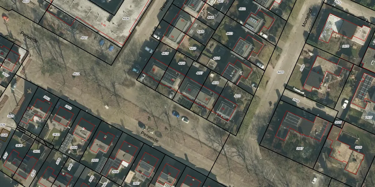 Perweide 65 is gelegen op kadastraal perceel UDH00E4417. Deze kadastrale aanduiding is uniek en wordt gebruikt door het Kadaster om eigendomsrechten en andere zakelijke rechten vast te leggen. Het perceel maakt onderdeel uit van de kadastrale gemeente Udenhout.