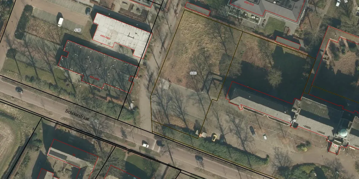 Schoorstraat 2-120 is gelegen op kadastraal perceel UDH00F6082. Deze kadastrale aanduiding is uniek en wordt gebruikt door het Kadaster om eigendomsrechten en andere zakelijke rechten vast te leggen. Het perceel maakt onderdeel uit van de kadastrale gemeente Udenhout.