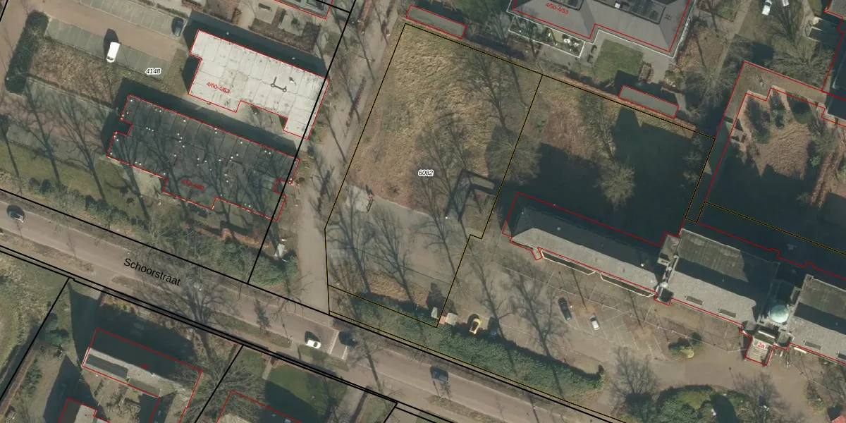 Het perceel waarop Schoorstraat 2-125 staat heeft een oppervlakte van 2178 m². Dit is een zeer groot perceel. De perceeloppervlakte wordt geregistreerd door het Kadaster. Gedetailleerde informatie over de maten van dit perceel kunt u vinden in het rapport Kadastrale kaart met maatvoering van Schoorstraat 2-125.