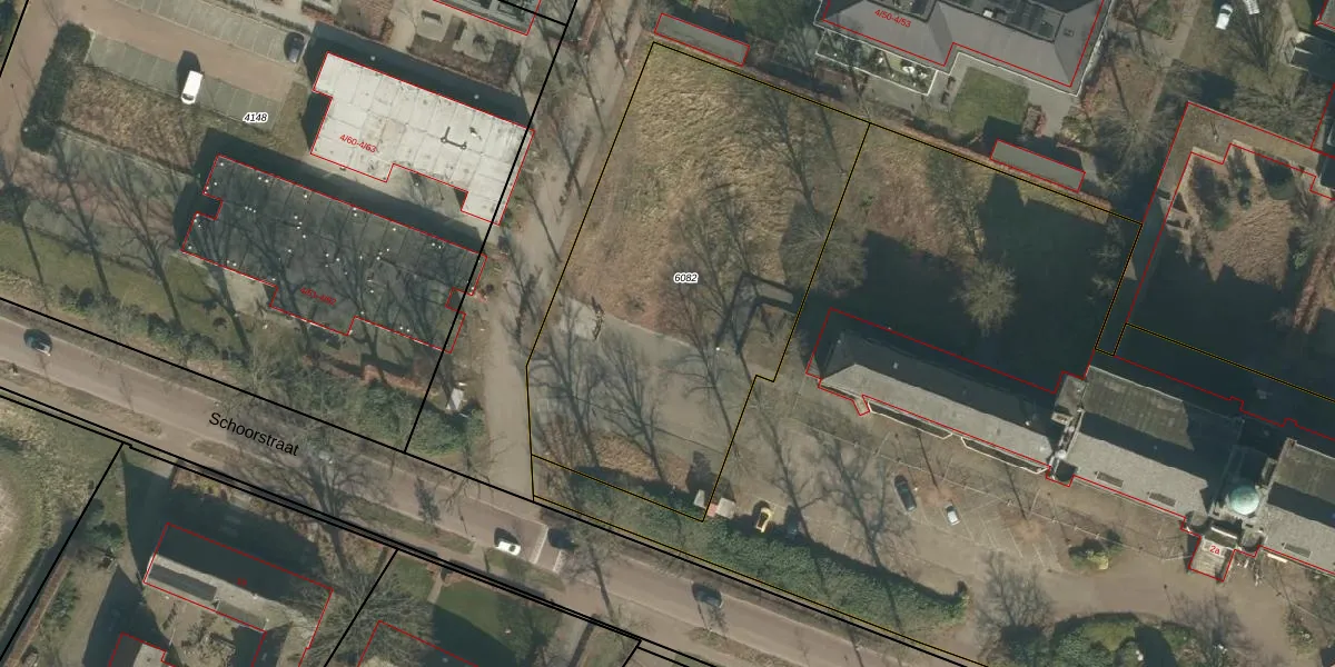 Het perceel waarop Schoorstraat 2-126 staat heeft een oppervlakte van 2178 m². Dit is een zeer groot perceel. De perceeloppervlakte wordt geregistreerd door het Kadaster. Gedetailleerde informatie over de maten van dit perceel kunt u vinden in het rapport Kadastrale kaart met maatvoering van Schoorstraat 2-126.
