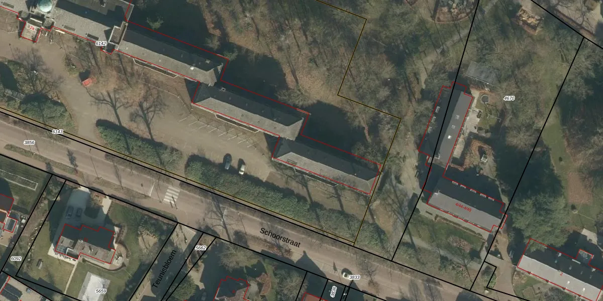 Het perceel waarop Schoorstraat 2-20 staat heeft een oppervlakte van 1,3 ha. Dit is een zeer groot perceel. De perceeloppervlakte wordt geregistreerd door het Kadaster. Gedetailleerde informatie over de maten van dit perceel kunt u vinden in het rapport Kadastrale kaart met maatvoering van Schoorstraat 2-20.