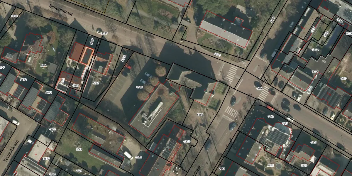 Gebruik de zoekbalk of klik op een perceel voor informatie over de adressen binnen dit perceel.